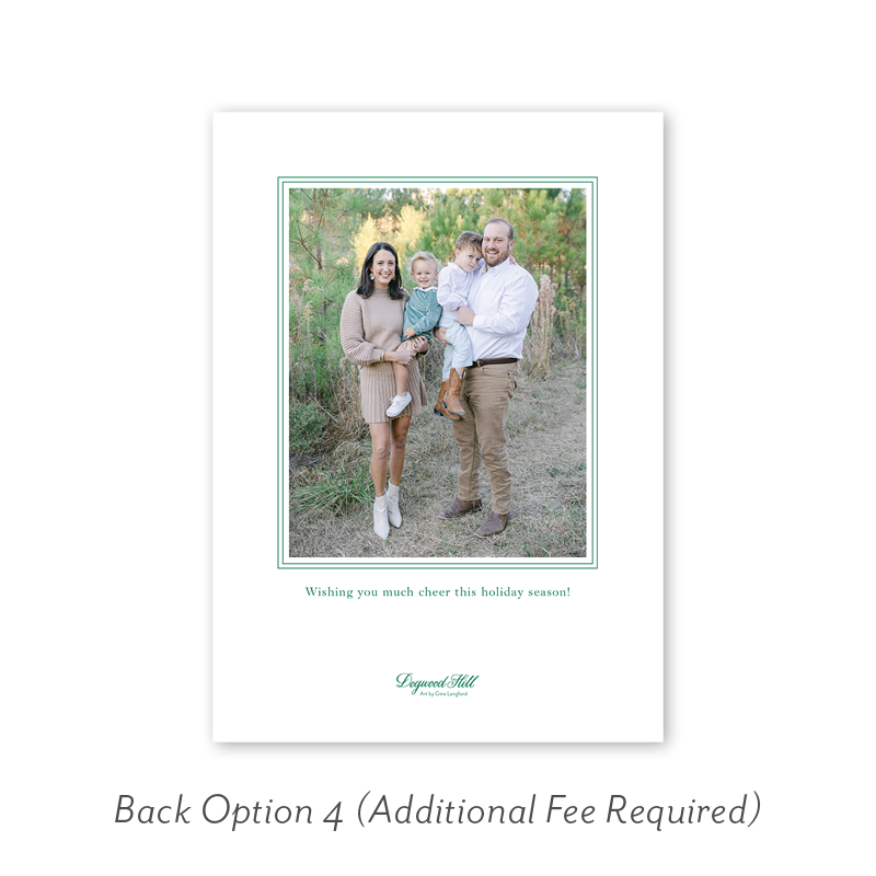 Select your order quantity from the dropdown menu below and check your total. Then click the Customize and Add to Cart button to create your card and add it to your cart.Want to add up to 4 photos on the back or inside of your card? Click here to add the fee to your cart.