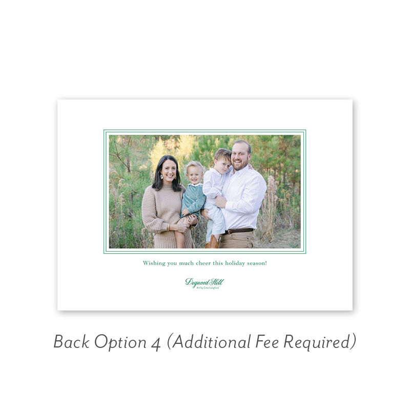 Select your order quantity from the dropdown menu below and check your total. Then click the Customize and Add to Cart button to create your card and add it to your cart.Want to add up to 4 photos on the back or inside of your card? Click here to add the fee to your cart.