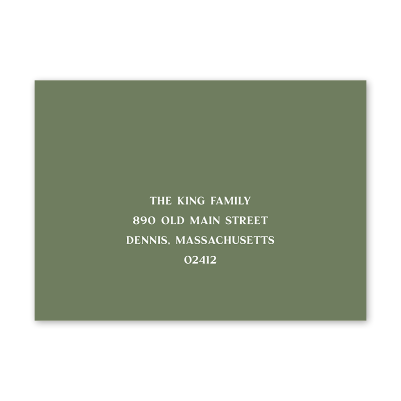 Enter your order quantity and check your total. Please enter your address EXACTLY like you want it printed on your envelope in the "Note" box below. Click Add to Cart. You will not receive a proof during the holidays (September 15 – December 31), unless your accompanying card requires a proof. If you do not include your address in the "Note" box or email it to Customer Service within 24 hours of placing your order, we will use your shipping address as the printed return address on your envelope. | /