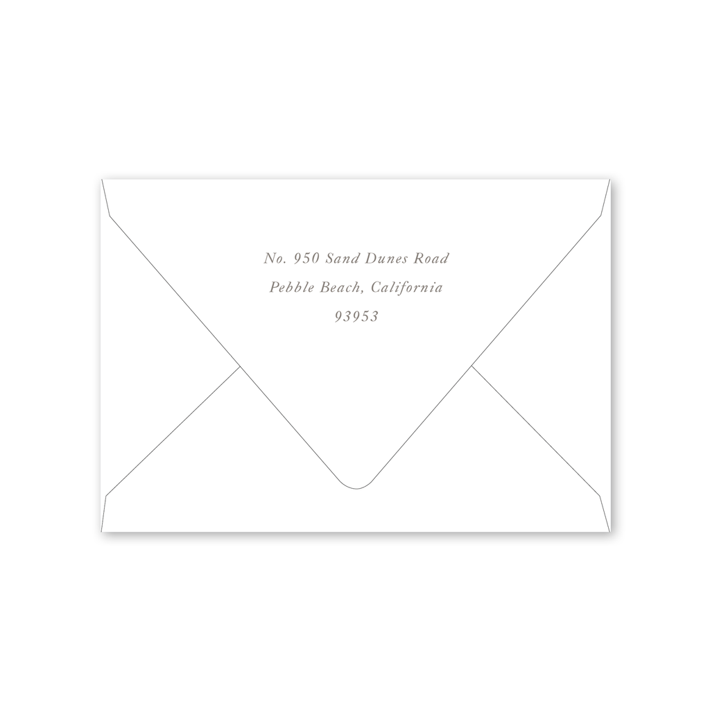 Enter your order quantity and check your total. Please enter your address EXACTLY like you want it printed on your envelope in the "Note" box below. Click Add to Cart. You will not receive a proof during the holidays (September 15 – December 31), unless your accompanying card requires a proof. If you do not include your address in the "Note" box or email it to Customer Service within 24 hours of placing your order, we will use your shipping address as the printed return address on your envelope.