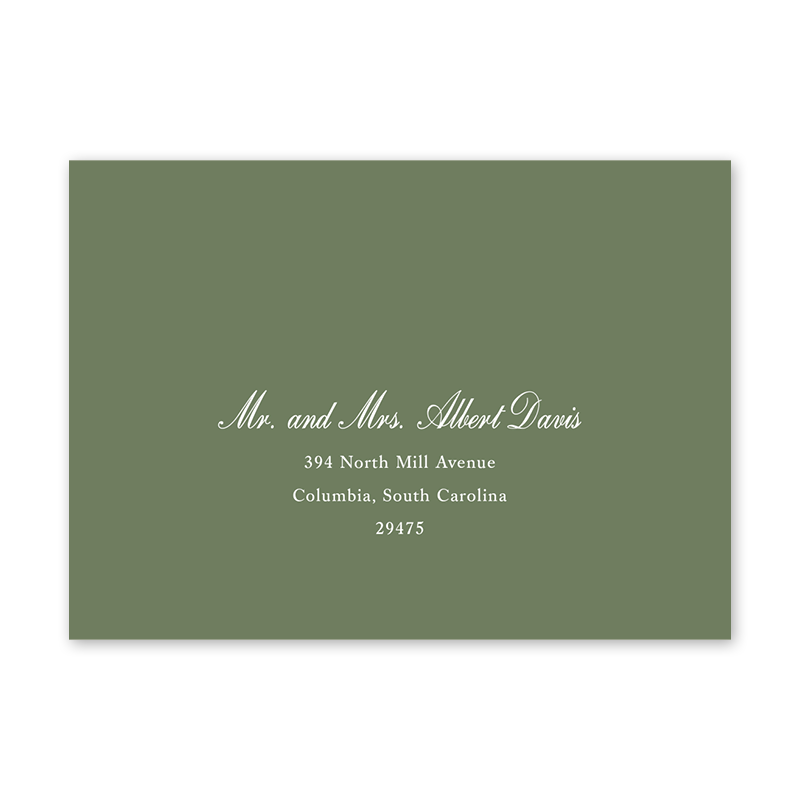 Enter your order quantity and check your total. Please enter your address EXACTLY like you want it printed on your envelope in the "Note" box below. Click Add to Cart. You will not receive a proof during the holidays (September 15 – December 31), unless your accompanying card requires a proof. If you do not include your address in the "Note" box or email it to Customer Service within 24 hours of placing your order, we will use your shipping address as the printed return address on your envelope. | /