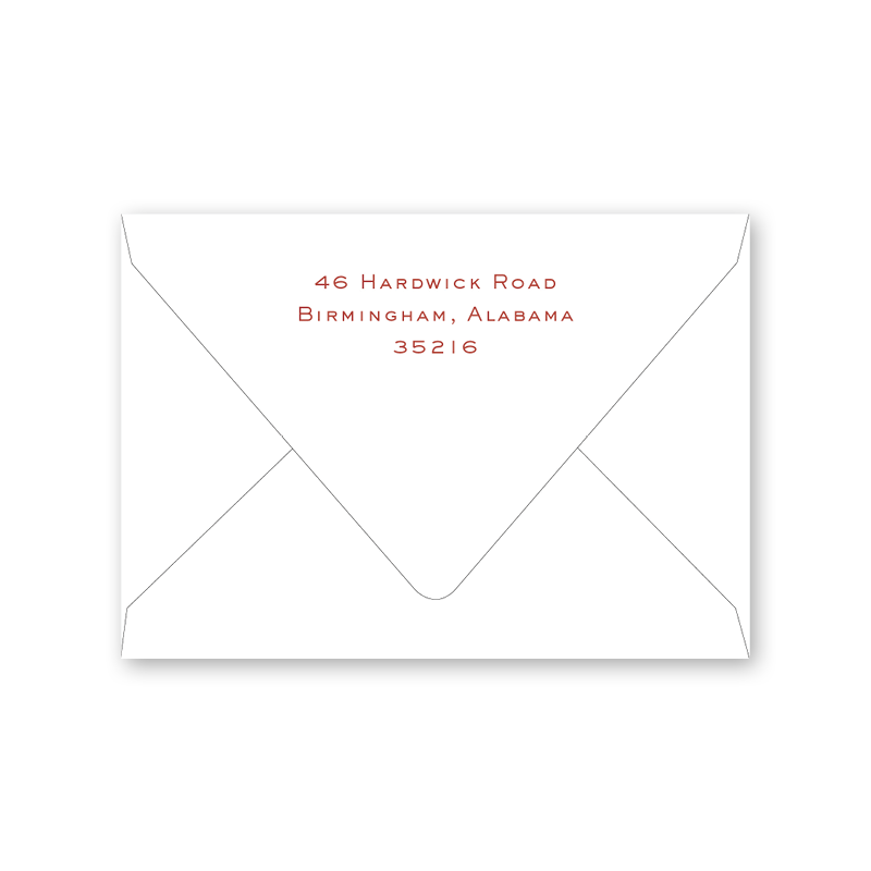 Enter your order quantity and check your total. Please enter your address EXACTLY like you want it printed on your envelope in the "Note" box below. Click Add to Cart. You will not receive a proof during the holidays (September 15 – December 31), unless your accompanying card requires a proof. If you do not include your address in the "Note" box or email it to Customer Service within 24 hours of placing your order, we will use your shipping address as the printed return address on your envelope.