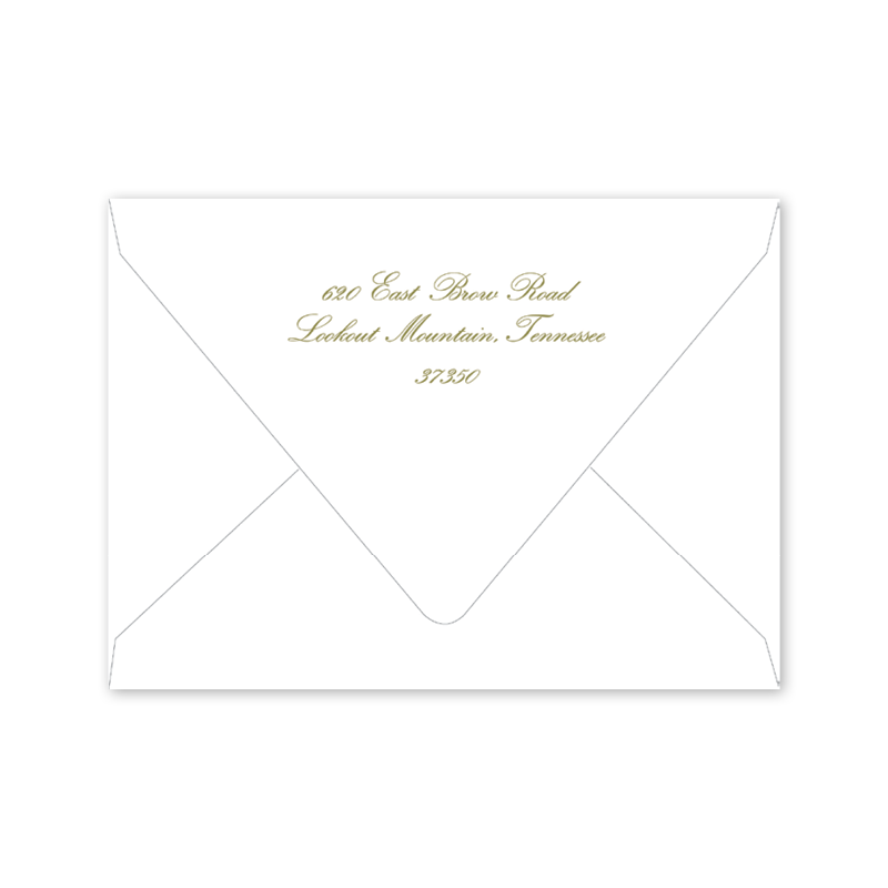 Enter your order quantity and check your total. Please enter your address EXACTLY like you want it printed on your envelope in the "Note" box below. Click Add to Cart. You will not receive a proof during the holidays (September 15 – December 31), unless your accompanying card requires a proof. If you do not include your address in the "Note" box or email it to Customer Service within 24 hours of placing your order, we will use your shipping address as the printed return address on your envelope.