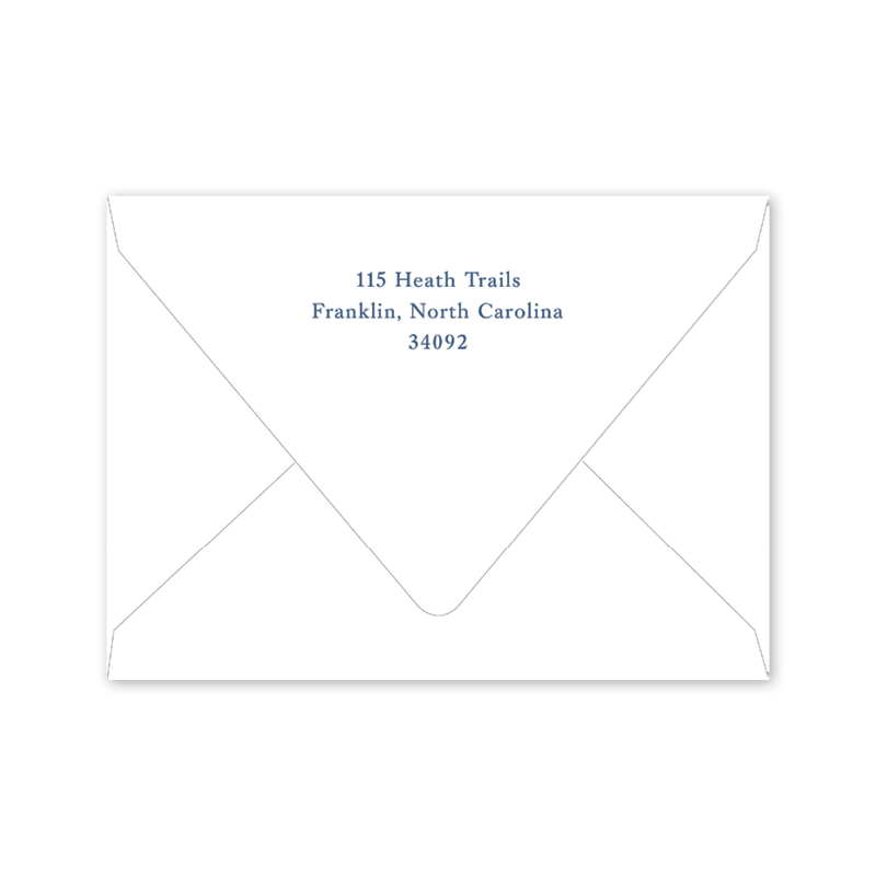 Enter your order quantity and check your total. Please enter your address EXACTLY like you want it printed on your envelope in the "Note" box below. Click Add to Cart. You will not receive a proof during the holidays (September 15 – December 31), unless your accompanying card requires a proof. If you do not include your address in the "Note" box or email it to Customer Service within 24 hours of placing your order, we will use your shipping address as the printed return address on your envelope.