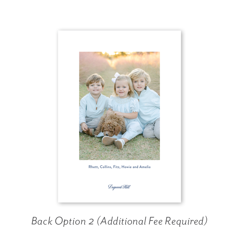 Select your order quantity from the dropdown menu below and check your total. Then click the Customize and Add to Cart button to create your card and add it to your cart.Want to add up to 4 photos on the back or inside of your card? Click here to add the fee to your cart.