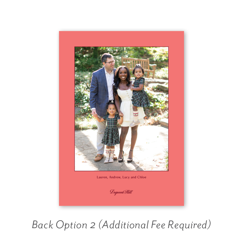 Select your order quantity from the dropdown menu below and check your total. Then click the Customize and Add to Cart button to create your card and add it to your cart.Want to add up to 4 photos on the back or inside of your card? Click here to add the fee to your cart.