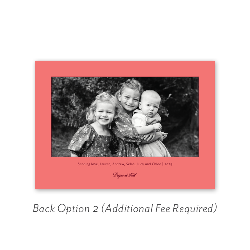 Select your order quantity from the dropdown menu below and check your total. Then click the Customize and Add to Cart button to create your card and add it to your cart.Want to add up to 4 photos on the back or inside of your card? Click here to add the fee to your cart.