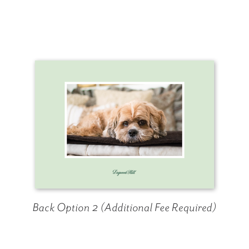 Select your order quantity from the dropdown menu below and check your total. Then click the Customize and Add to Cart button to create your card and add it to your cart.Want to add up to 4 photos on the back or inside of your card? Click here to add the fee to your cart.