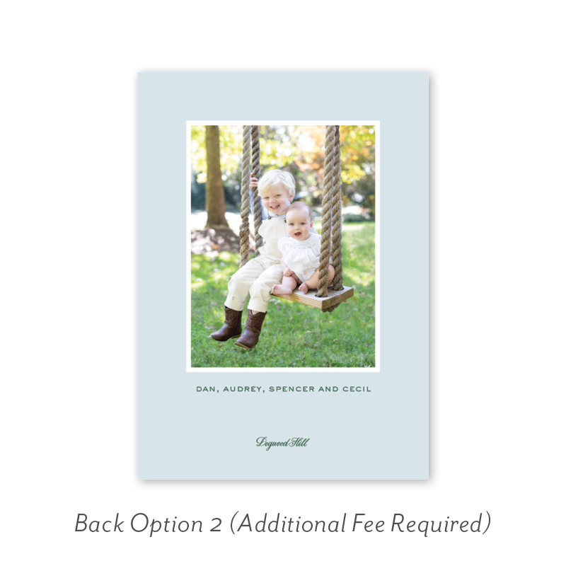 Select your order quantity from the dropdown menu below and check your total. Then click the Customize and Add to Cart button to create your card and add it to your cart.Want to add up to 4 photos on the back or inside of your card? Click here to add the fee to your cart.