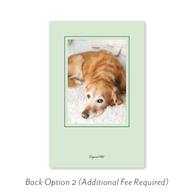 Select your order quantity from the dropdown menu below and check your total. Then click the Customize and Add to Cart button to create your card and add it to your cart.Want to add up to 4 photos on the back or inside of your card? Click here to add the fee to your cart.
