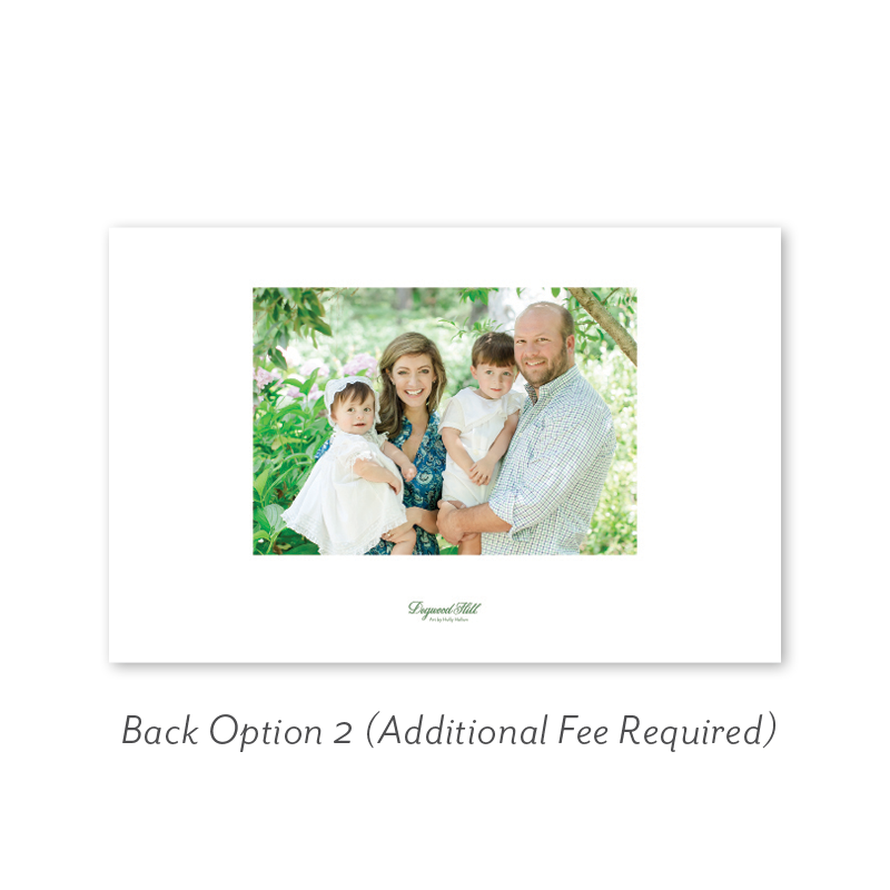 Select your order quantity from the dropdown menu below and check your total. Then click the Customize and Add to Cart button to create your card and add it to your cart.Want to add up to 4 photos on the back or inside of your card? Click here to add the fee to your cart.