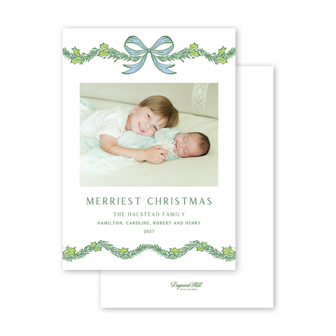 Holly Lane Blue Garland Bow Recipient Address Printing