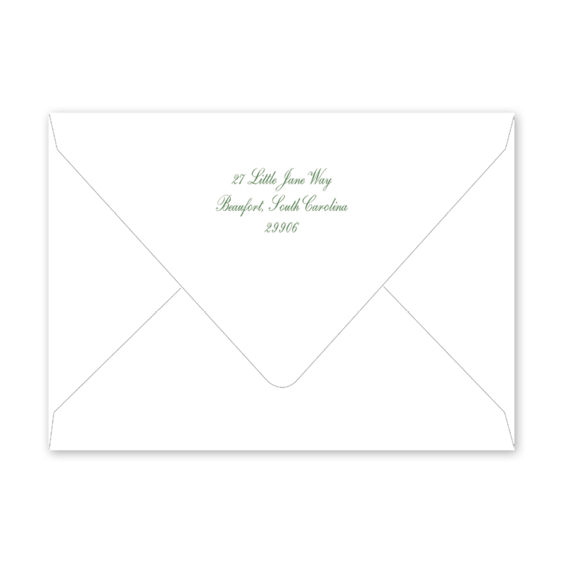Enter your order quantity and check your total. Please enter your address EXACTLY like you want it printed on your envelope in the "Note" box below. Click Add to Cart. You will not receive a proof during the holidays (September 15 – December 31), unless your accompanying card requires a proof. If you do not include your address in the "Note" box or email it to Customer Service within 24 hours of placing your order, we will use your shipping address as the printed return address on your envelope.