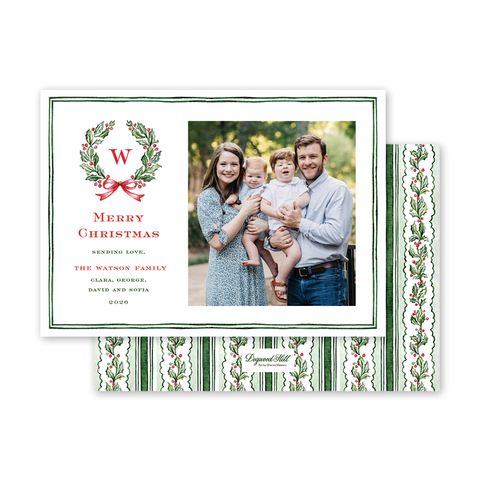 Holly Ribbons Wreath Landscape Recipient Address Printing
