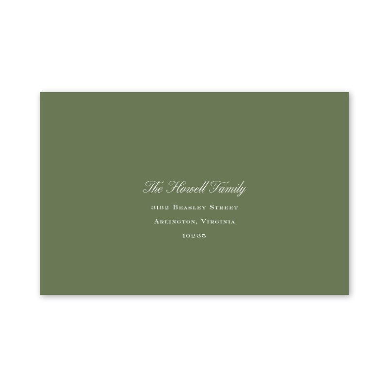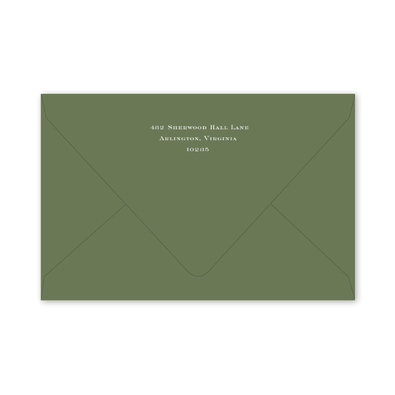 Enter your order quantity and check your total. Please enter your address EXACTLY like you want it printed on your envelope in the "Note" box below. Click Add to Cart. You will not receive a proof during the holidays (September 15 – December 31), unless your accompanying card requires a proof. If you do not include your address in the "Note" box or email it to Customer Service within 24 hours of placing your order, we will use your shipping address as the printed return address on your envelope. Enter your order quantity and check your total. Then click the Customize and Add to Cart button to enter your address and add the envelope to your cart. | /