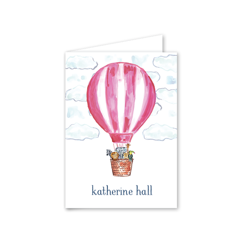 Hot Air Balloon Animals Pink Folded Notecard Envelopes
