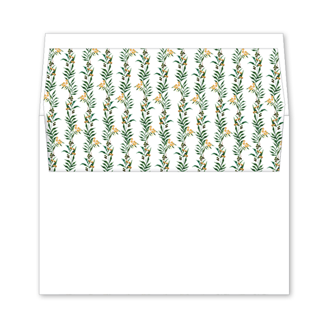 Each invitation comes with an inner and outer envelope and return address printing on the outer envelope flap. Envelope liner may be purchased for an additional cost on the main collection page.