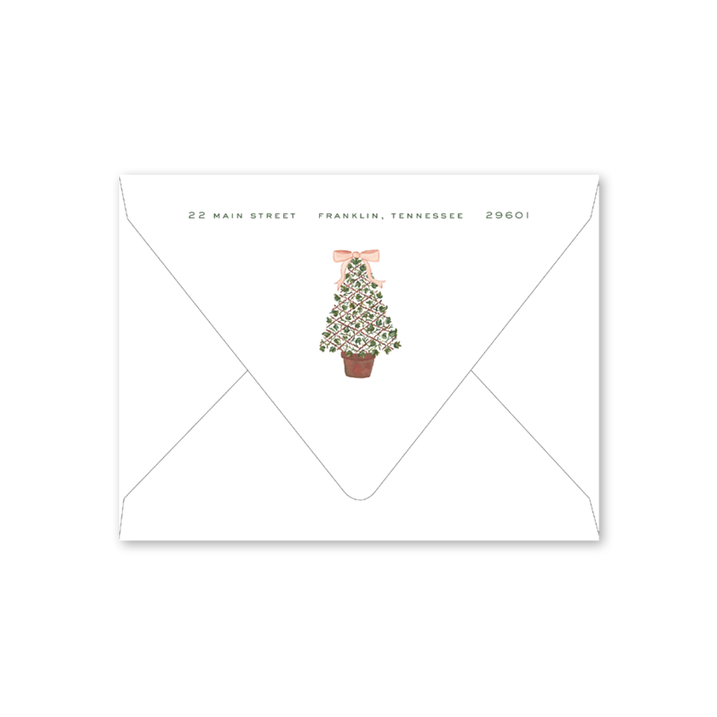 Enter your order quantity and check your total. Please enter your address EXACTLY like you want it printed on your envelope in the "Note" box below. Click Add to Cart. You will not receive a proof during the holidays (September 15 – December 31), unless your accompanying card requires a proof. If you do not include your address in the "Note" box or email it to Customer Service within 24 hours of placing your order, we will use your shipping address as the printed return address on your envelope. Enter your order quantity and check your total. Then click the Customize and Add to Cart button to enter your address and add the envelope to your cart.