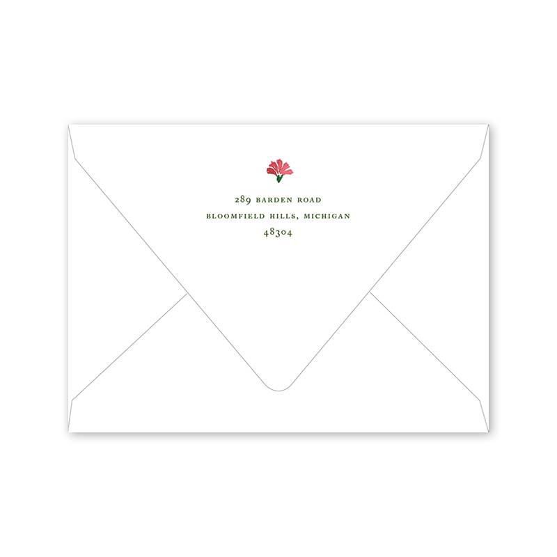 Enter your order quantity and check your total. Please enter your address EXACTLY like you want it printed on your envelope in the "Note" box below. Click Add to Cart. You will not receive a proof during the holidays (September 15 – December 31), unless your accompanying card requires a proof. If you do not include your address in the "Note" box or email it to Customer Service within 24 hours of placing your order, we will use your shipping address as the printed return address on your envelope.