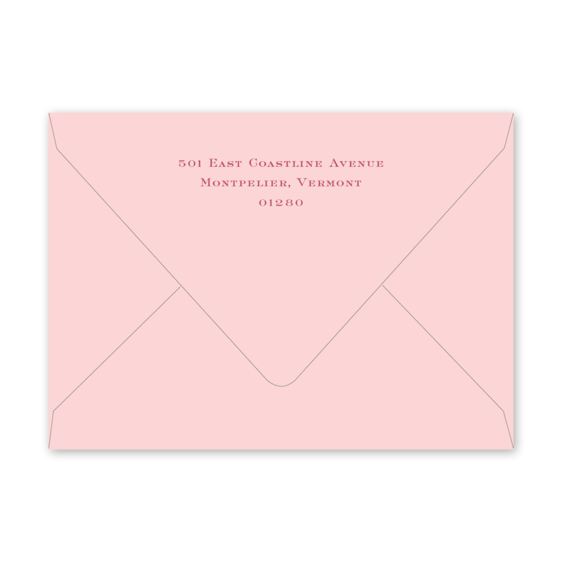 Enter your order quantity and check your total. Please enter your address EXACTLY like you want it printed on your envelope in the "Note" box below. Click Add to Cart. You will not receive a proof during the holidays (September 15 – December 31), unless your accompanying card requires a proof. If you do not include your address in the "Note" box or email it to Customer Service within 24 hours of placing your order, we will use your shipping address as the printed return address on your envelope. Enter your order quantity and check your total. Then click the Customize and Add to Cart button to enter your address and add the envelope to your cart. | /