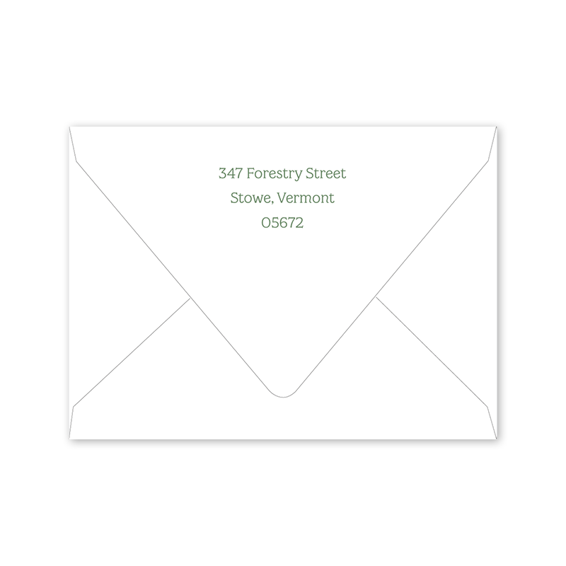 Enter your order quantity and check your total. Please enter your address EXACTLY like you want it printed on your envelope in the "Note" box below. Click Add to Cart. You will not receive a proof during the holidays (September 15 – December 31), unless your accompanying card requires a proof. If you do not include your address in the "Note" box or email it to Customer Service within 24 hours of placing your order, we will use your shipping address as the printed return address on your envelope.