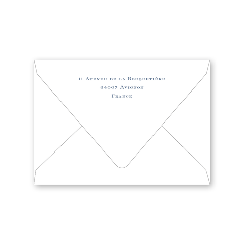 Select your order quantity from the dropbox menu below and check your total. Enter the personalization text for your notecard in the “Note” box below. Click Add to Cart. You will receive a proof notification via email and text message within 3 to 5 business days.Each card comes with one free BLANK Eggshell White envelope.