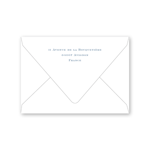 Select your order quantity from the dropbox menu below and check your total. Enter the personalization text for your notecard in the “Note” box below. Click Add to Cart. You will receive a proof notification via email and text message within 3 to 5 business days.Each card comes with one free BLANK Eggshell White envelope.