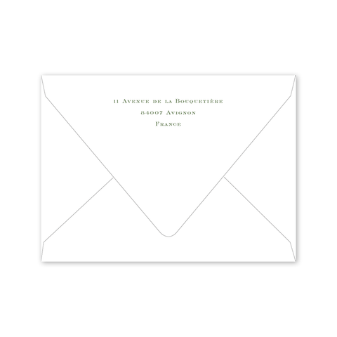 Select your order quantity from the dropbox menu below and check your total. Enter the personalization text for your notecard in the “Note” box below. Click Add to Cart. You will receive a proof notification via email and text message within 3 to 5 business days.Each card comes with one free BLANK Eggshell White envelope.