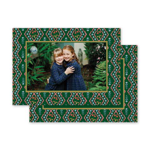 Lamia Damask Green Border Landscape Recipient Address Printing