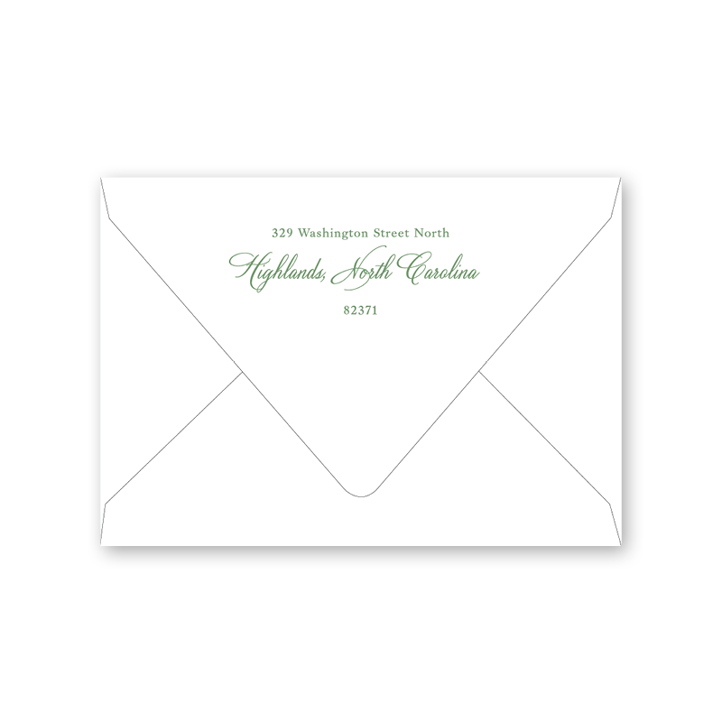 Enter your order quantity and check your total. Please enter your address EXACTLY like you want it printed on your envelope in the "Note" box below. Click Add to Cart. You will not receive a proof during the holidays (September 15 – December 31), unless your accompanying card requires a proof. If you do not include your address in the "Note" box or email it to Customer Service within 24 hours of placing your order, we will use your shipping address as the printed return address on your envelope.