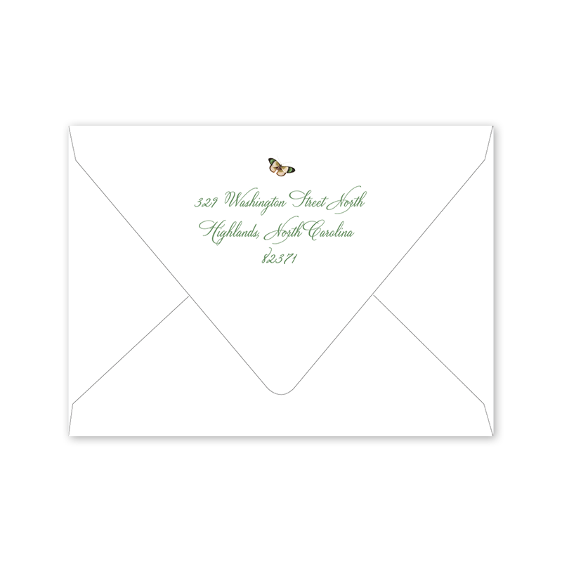 Enter your order quantity and check your total. Please enter your address EXACTLY like you want it printed on your envelope in the "Note" box below. Click Add to Cart. You will not receive a proof during the holidays (September 15 – December 31), unless your accompanying card requires a proof. If you do not include your address in the "Note" box or email it to Customer Service within 24 hours of placing your order, we will use your shipping address as the printed return address on your envelope.