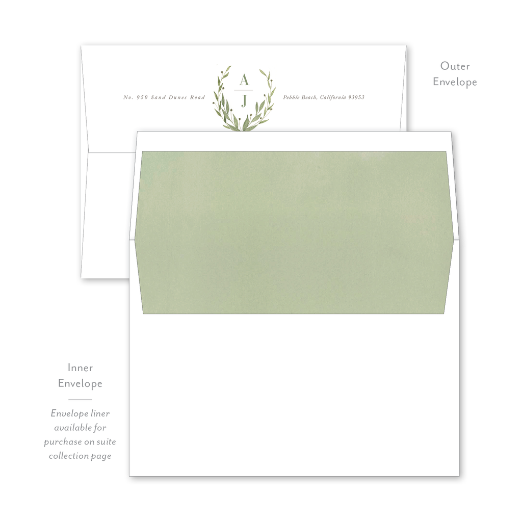 Each invitation comes with an inner and outer envelope and return address printing on the outer envelope flap. Envelope liner may be purchased for an additional cost on the main collection page.