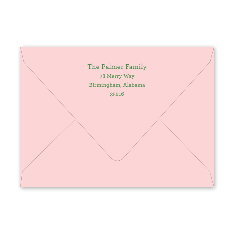 Enter your order quantity and check your total. Please enter your address EXACTLY like you want it printed on your envelope in the "Note" box below. Click Add to Cart. You will not receive a proof during the holidays (September 15 – December 31), unless your accompanying card requires a proof. If you do not include your address in the "Note" box or email it to Customer Service within 24 hours of placing your order, we will use your shipping address as the printed return address on your envelope. Enter your order quantity and check your total. Then click the Customize and Add to Cart button to enter your address and add the envelope to your cart. | /