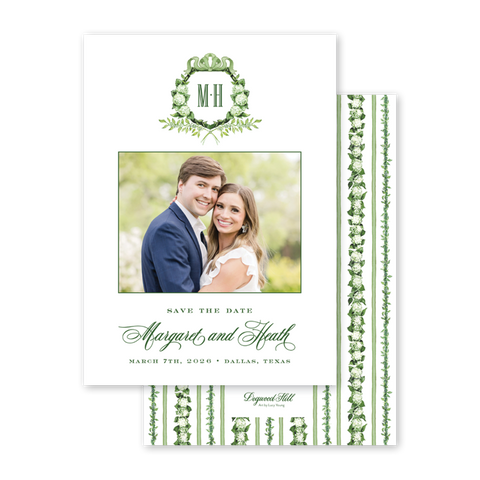 Limelights Green Wreath Save the Date with Photo Green Liner