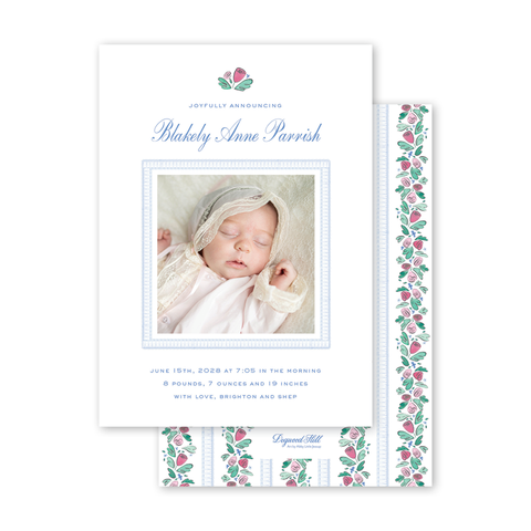 Lovely Blooms Blue Birth Announcement Recipient Address Printing