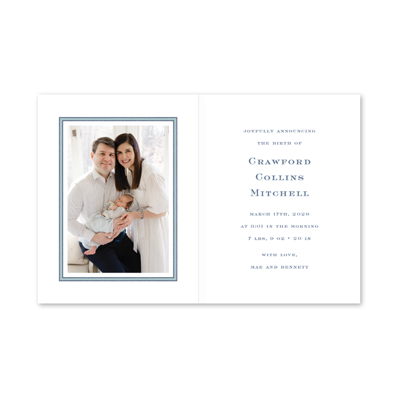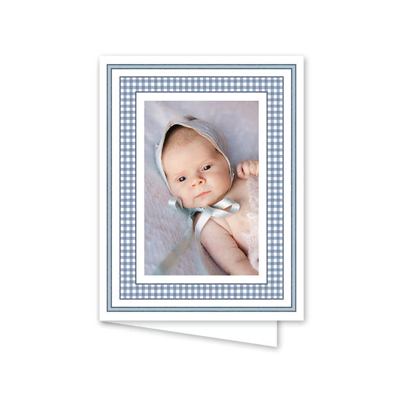 Maison dé Frédéric Gingham Blue Folded Birth Announcement