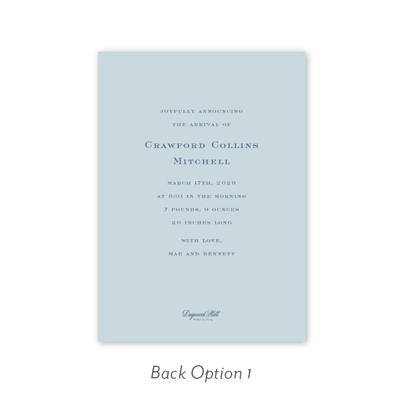 Maison dé Frédéric Gingham Blue Stripe Birth Announcement