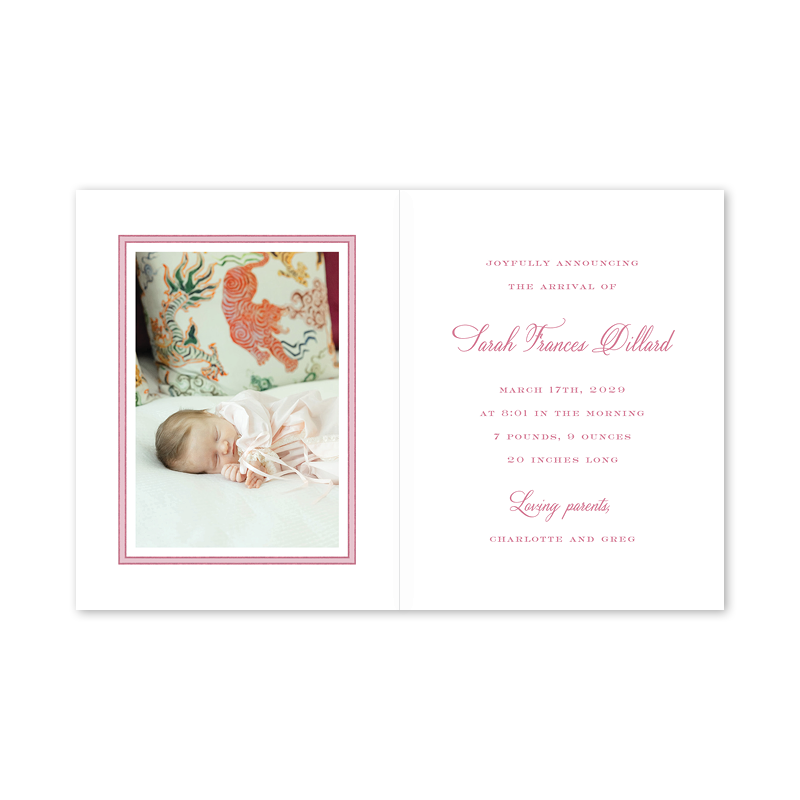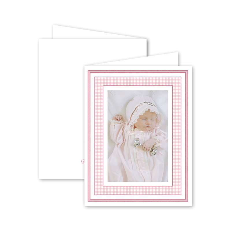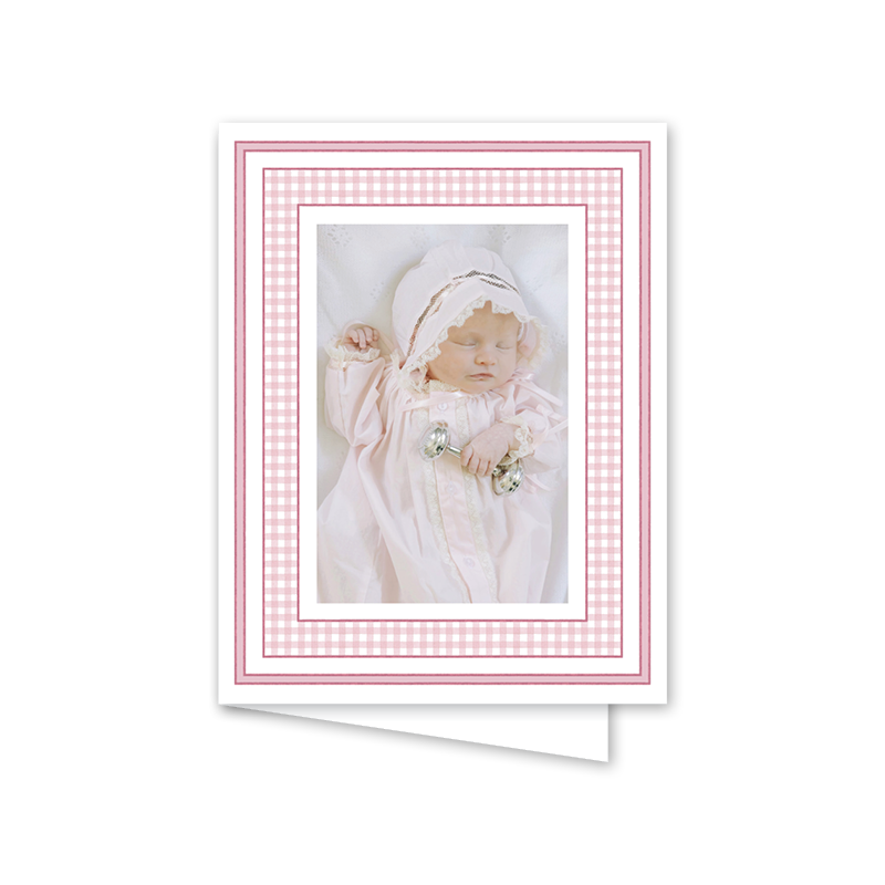 Maison dé Frédéric Gingham Pink Folded Birth Announcement