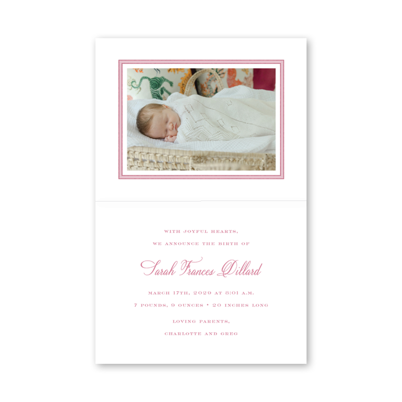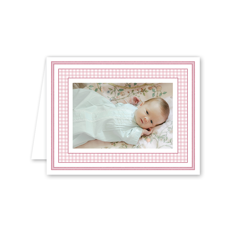 Maison dé Frédéric Gingham Pink Folded Landscape Birth Announcement