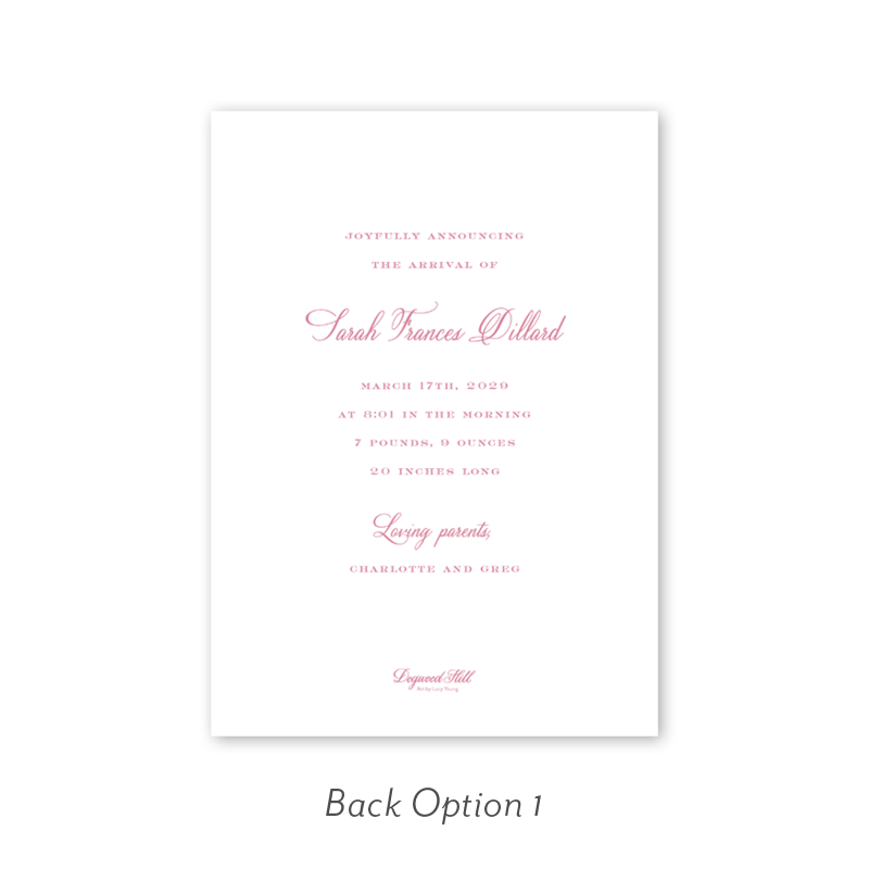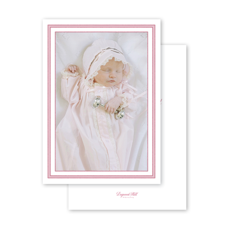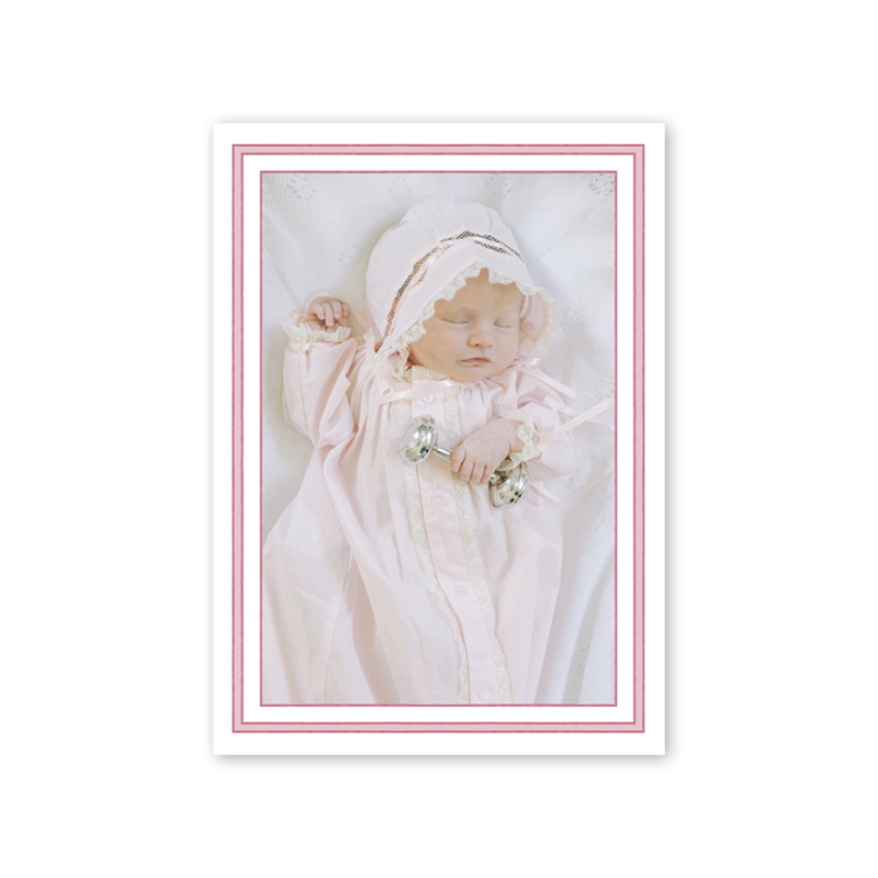 Maison dé Frédéric Gingham Pink Stripe Birth Announcement
