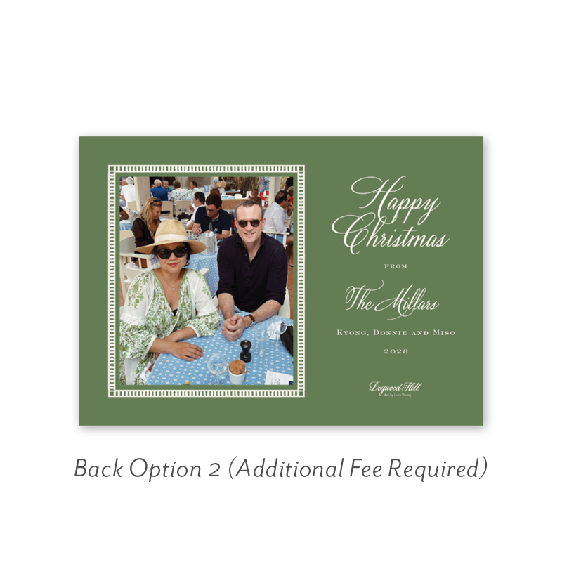 Select your order quantity from the dropdown menu below and check your total. Then click the Customize and Add to Cart button to create your card and add it to your cart.Want to add up to 4 photos on the back or inside of your card? Click here to add the fee to your cart.