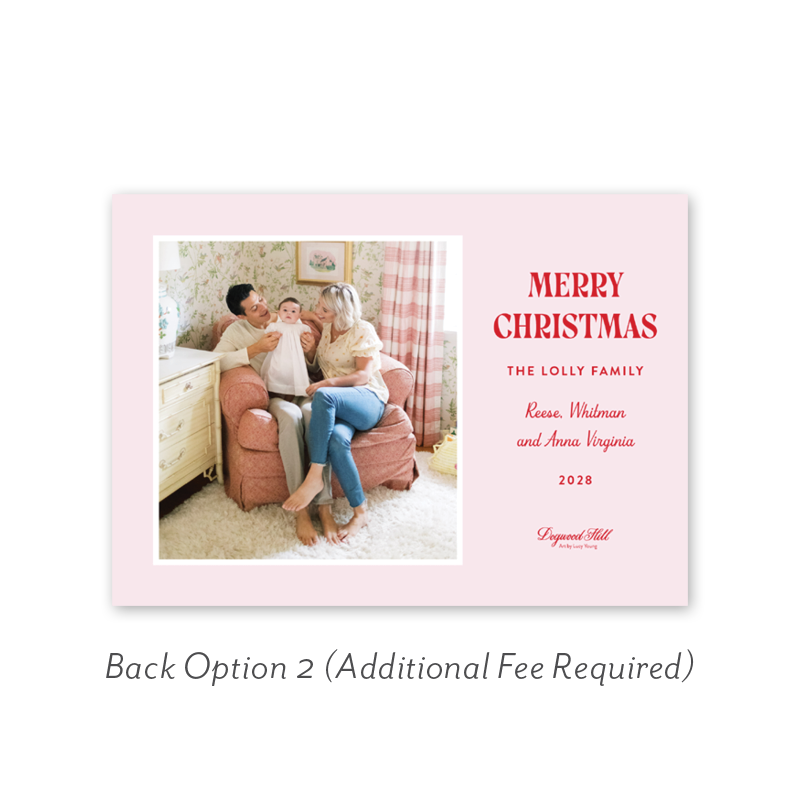 Select your order quantity from the dropdown menu below and check your total. Then click the Customize and Add to Cart button to create your card and add it to your cart.Want to add up to 4 photos on the back or inside of your card? Click here to add the fee to your cart.
