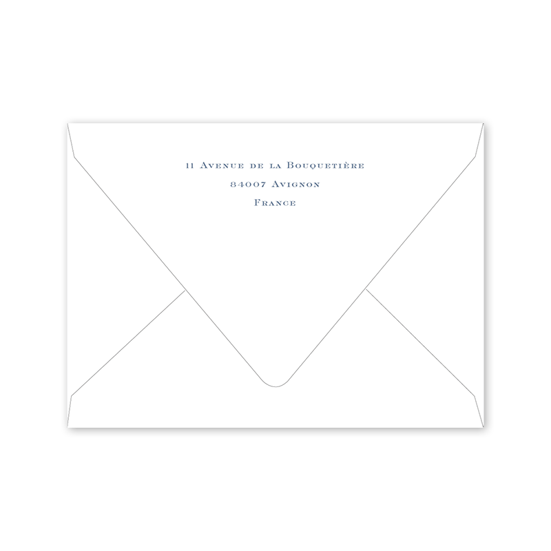 Enter your order quantity and check your total. Please enter your address EXACTLY like you want it printed on your envelope in the "Note" box below. Click Add to Cart. You will not receive a proof during the holidays (September 15 – December 31), unless your accompanying card requires a proof. If you do not include your address in the "Note" box or email it to Customer Service within 24 hours of placing your order, we will use your shipping address as the printed return address on your envelope.