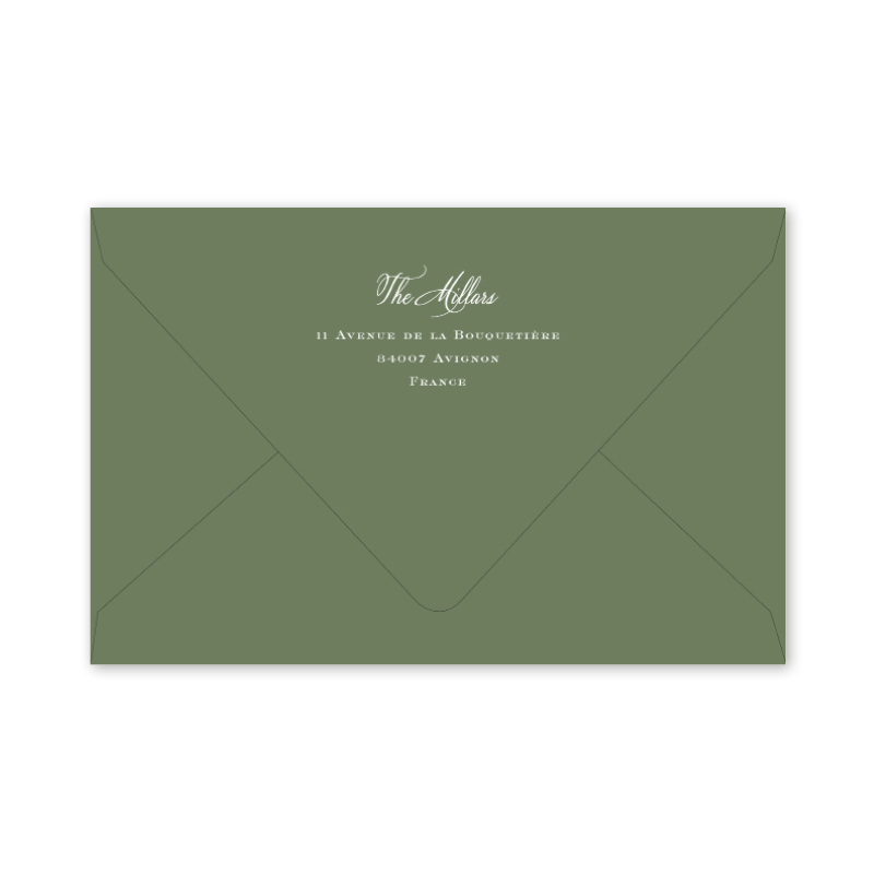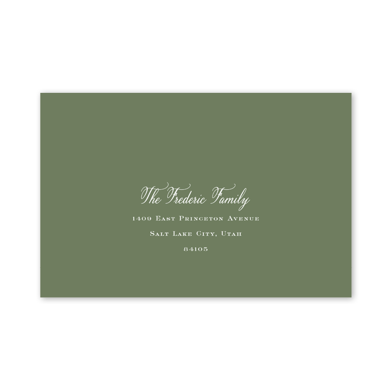 Enter your order quantity and check your total. Please enter your address EXACTLY like you want it printed on your envelope in the "Note" box below. Click Add to Cart. You will not receive a proof during the holidays (September 15 – December 31), unless your accompanying card requires a proof. If you do not include your address in the "Note" box or email it to Customer Service within 24 hours of placing your order, we will use your shipping address as the printed return address on your envelope. Enter your order quantity and check your total. Then click the Customize and Add to Cart button to enter your address and add the envelope to your cart. | /