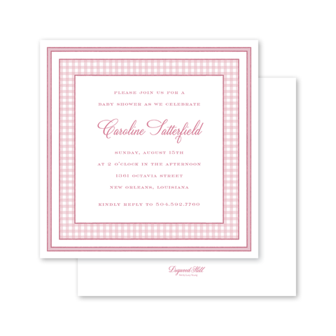 Maison dé Frédéric Gingham Pink Border Baby Shower Recipient Address Printing
