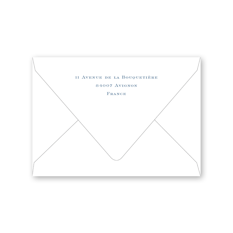 Enter your order quantity and check your total. Please enter your address EXACTLY like you want it printed on your envelope in the "Note" box below. Click Add to Cart. You will not receive a proof during the holidays (September 15 – December 31), unless your accompanying card requires a proof. If you do not include your address in the "Note" box or email it to Customer Service within 24 hours of placing your order, we will use your shipping address as the printed return address on your envelope.