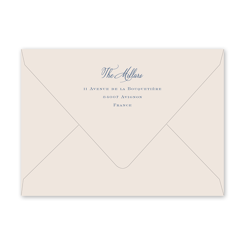 Enter your order quantity and check your total. Please enter your address EXACTLY like you want it printed on your envelope in the "Note" box below. Click Add to Cart. You will not receive a proof during the holidays (September 15 – December 31), unless your accompanying card requires a proof. If you do not include your address in the "Note" box or email it to Customer Service within 24 hours of placing your order, we will use your shipping address as the printed return address on your envelope. Enter your order quantity and check your total. Then click the Customize and Add to Cart button to enter your address and add the envelope to your cart. | /