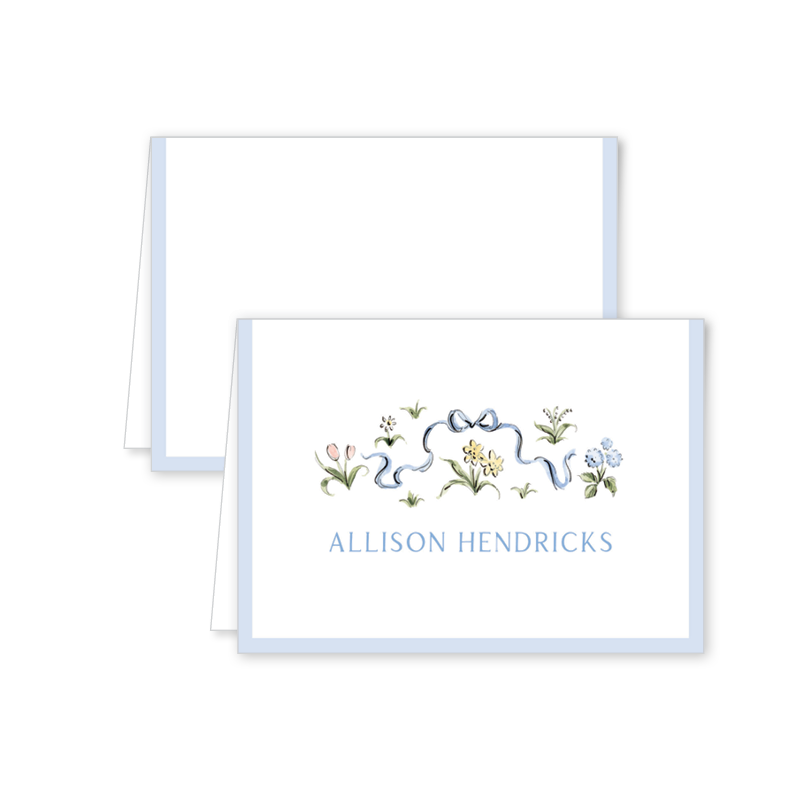 25 personalized notecards sized 3.5 x 4.875 inches folded on 120 lb Mohawk Eggshell White Paper
