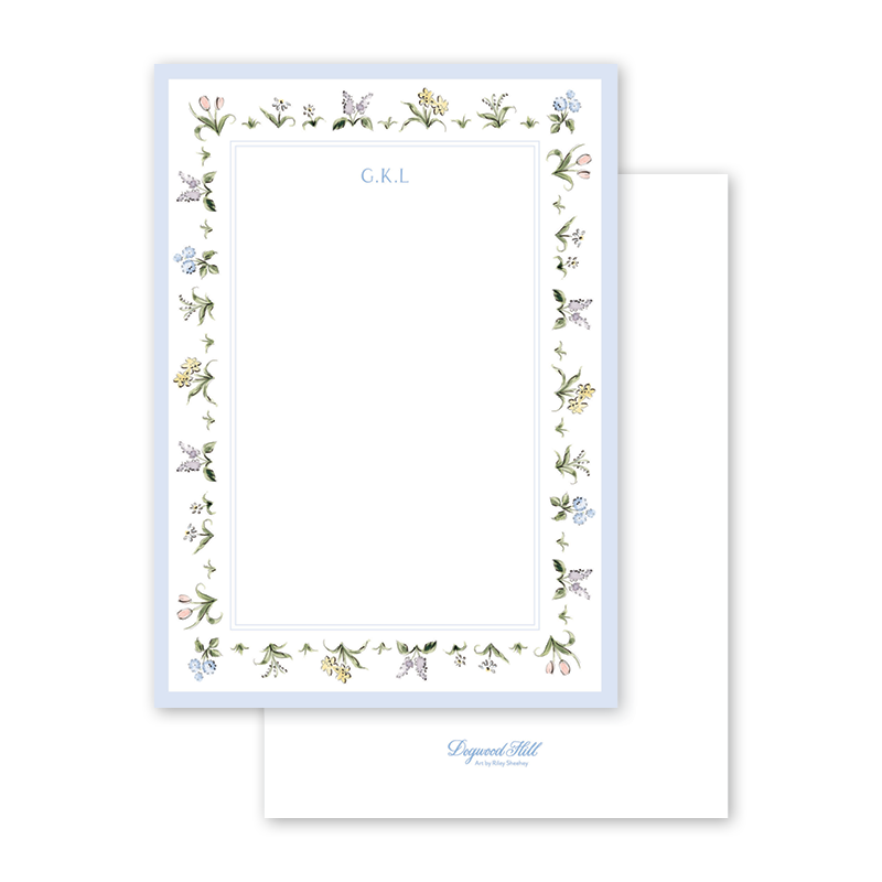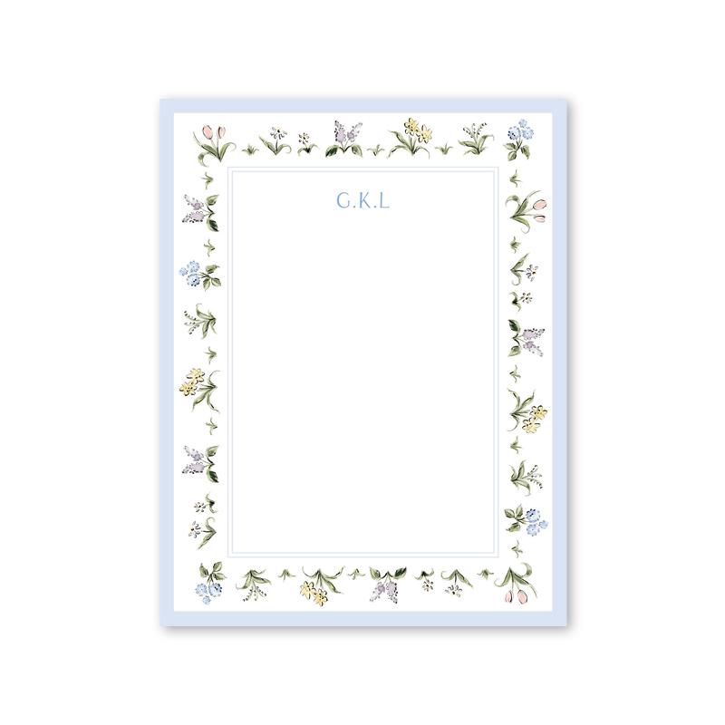 75 sheet personalized notepad sized 4.25 x 5.5 inches on 100 lb Mohawk Eggshell White Paper