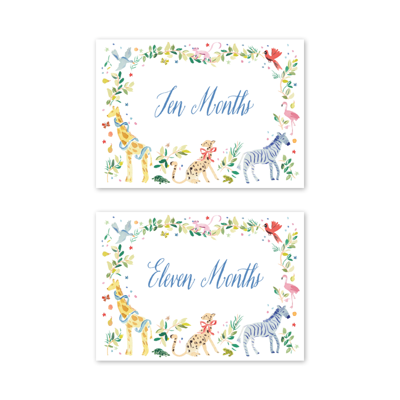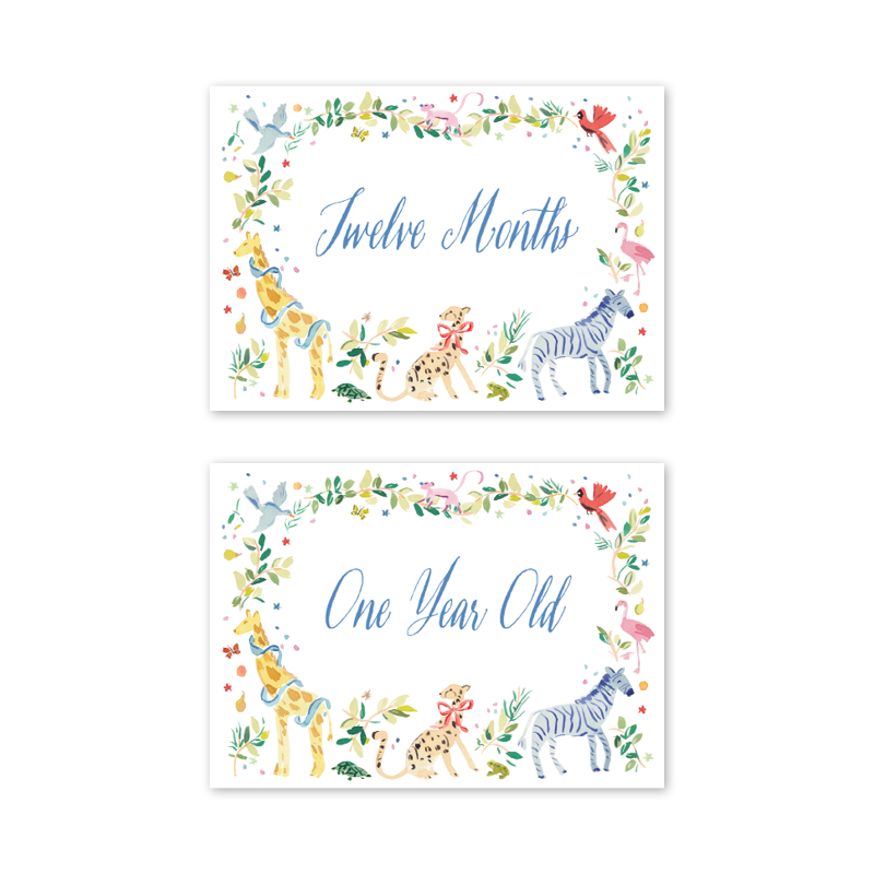 Photograph your baby's first year of life with our charming Milestone Cards! Each set includes fifteen 5x7 inch cards that are printed on 120 lb Mohawk Eggshell White paper.
